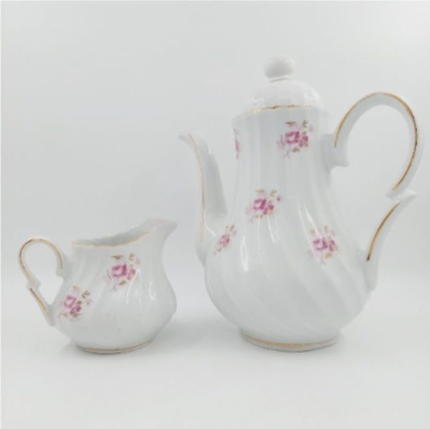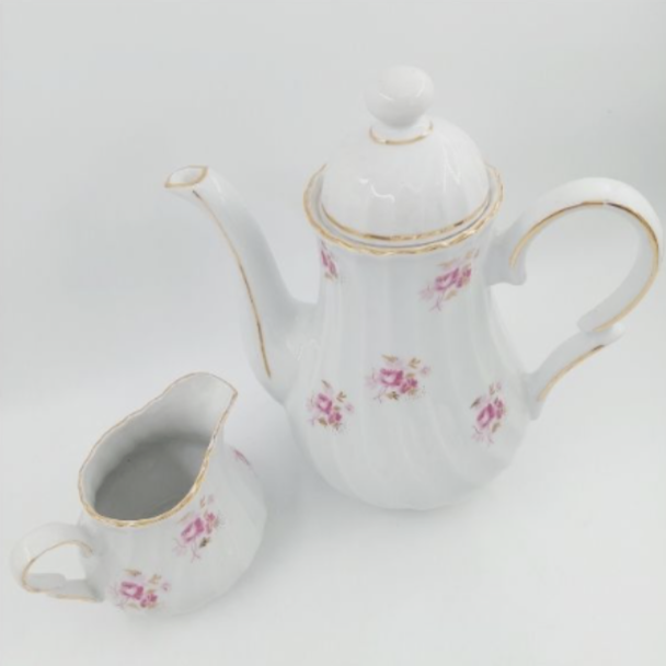 Kütahya Porselen sütlük ve çay potu. Yeni ürün değildir. Vitrin çıkmasıdır.